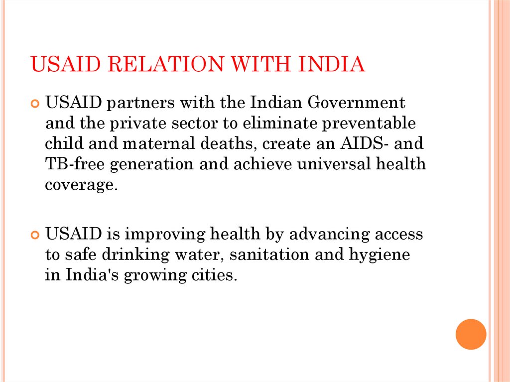 USAID RELATION WITH INDIAUSAID partners with the Indian Government