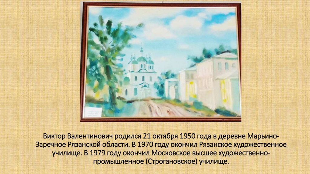 Виктор Валентинович родился 21 октября 1950 года в деревне МарьиноЗаречное Рязанской области. В 1970 году окончил Рязанское художественноеучилище. В 1979 году окончил Московское высшее художественнопромышленное (Строгановское) училище.