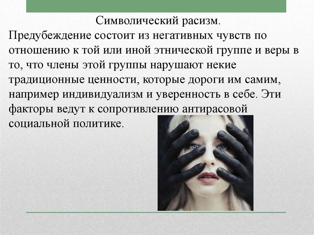 Символический расизм.Предубеждение состоит из негативных чувств по