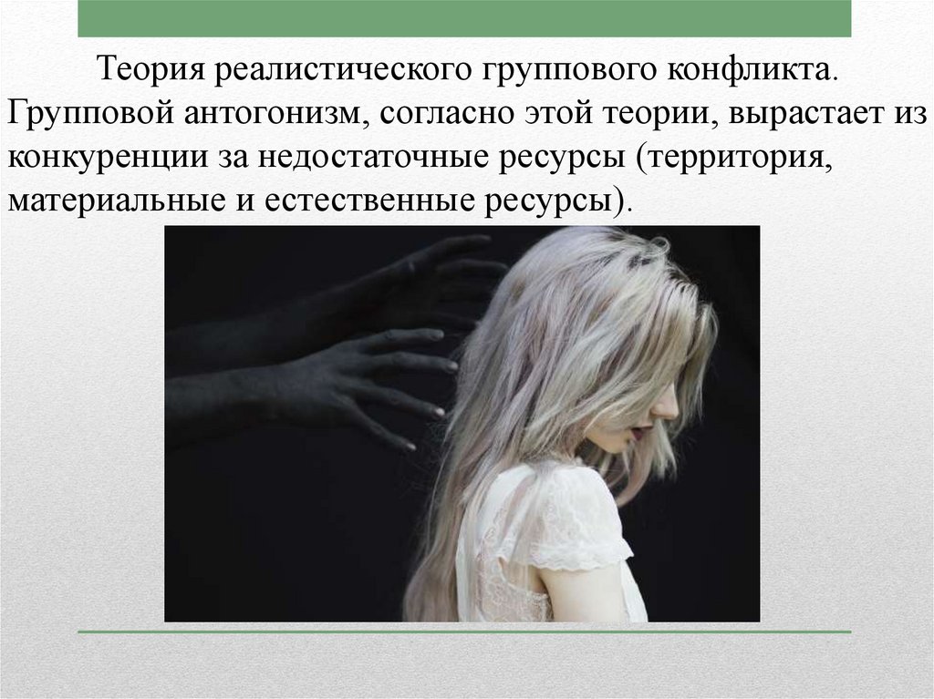Теория реалистического группового конфликта.Групповой антогонизм, согласно этой теории, вырастает из