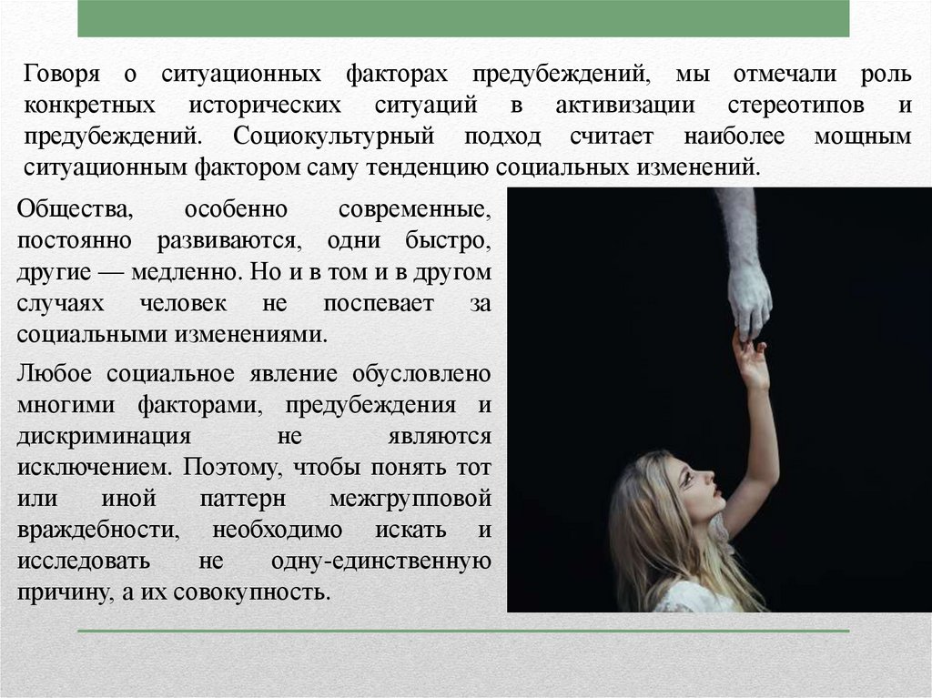 Говоря о ситуационных факторах предубеждений, мы отмечали рольконкретных исторических ситуаций в активизации стереотипов и