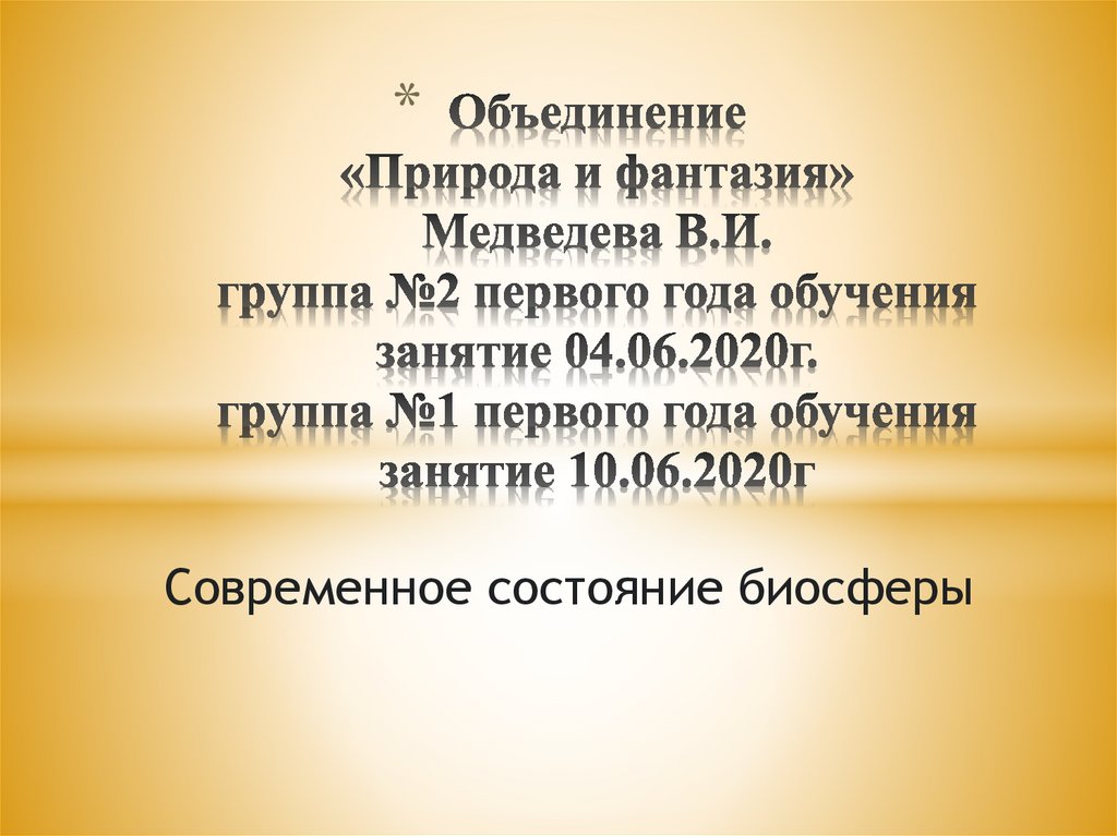 *Современное состояние биосферы
