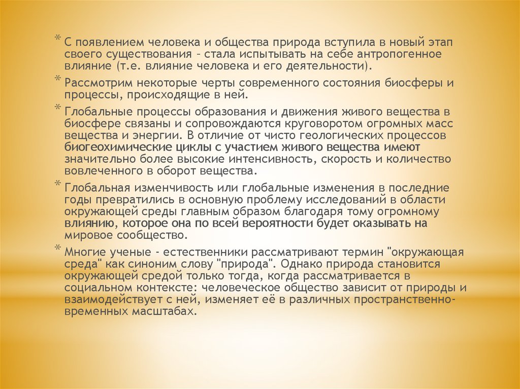 * С появлением человека и общества природа вступила в новый этапсвоего существования – стала испытывать на себе антропогенное