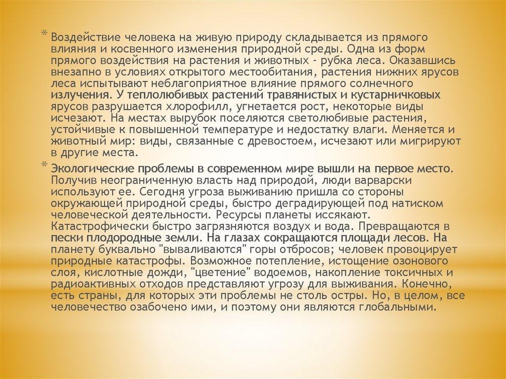* Экологические проблемы в современном мире вышли на первое место.