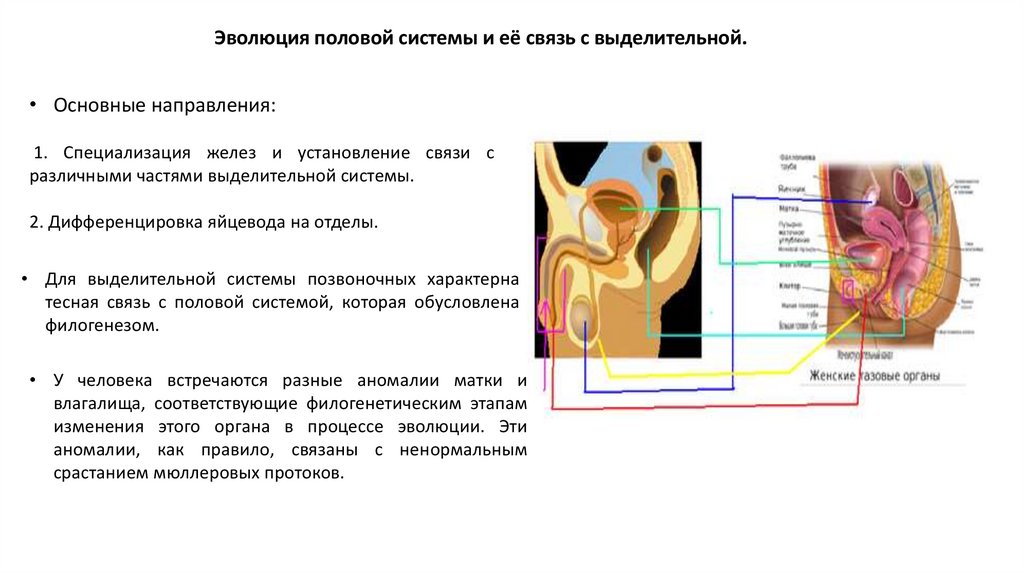 Эволюция половой системы и её связь с выделительной.• Основные направления: