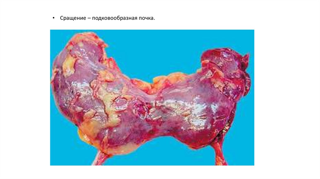 • Сращение – подковообразная почка.9.