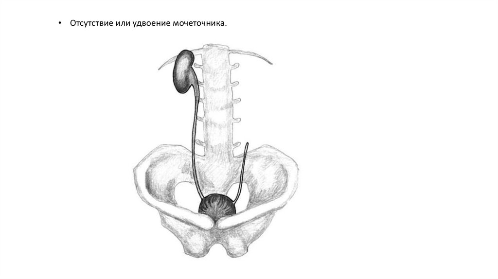 • Отсутствие или удвоение мочеточника.11.