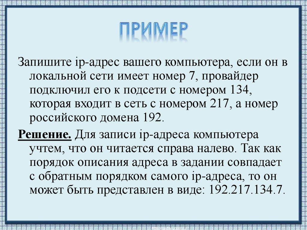 Решение. Для записи ip-адреса компьютера