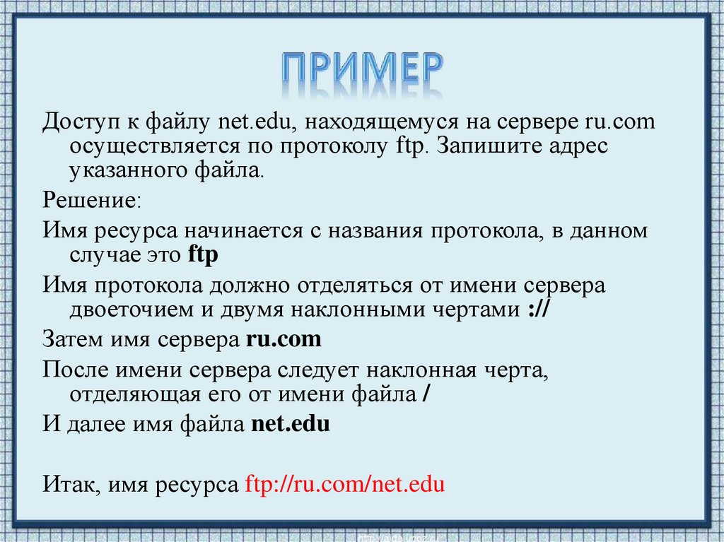 Итак, имя ресурса ftp://ru.com/net.edu