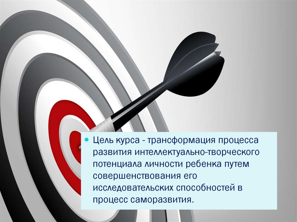 Цель курса - трансформация процессаразвития интеллектуально-творческого