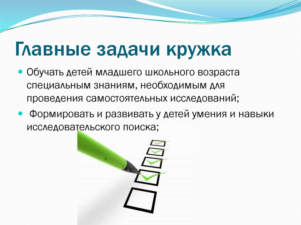 Главные задачи кружкаОбучать детей младшего школьного возраста