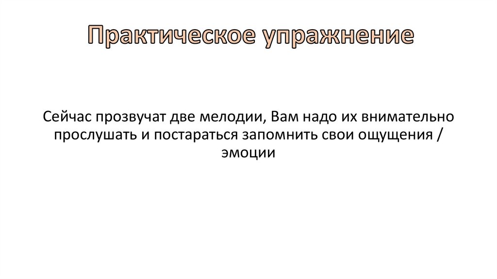 Сейчас прозвучат две мелодии, Вам надо их внимательнопрослушать и постараться запомнить свои ощущения /