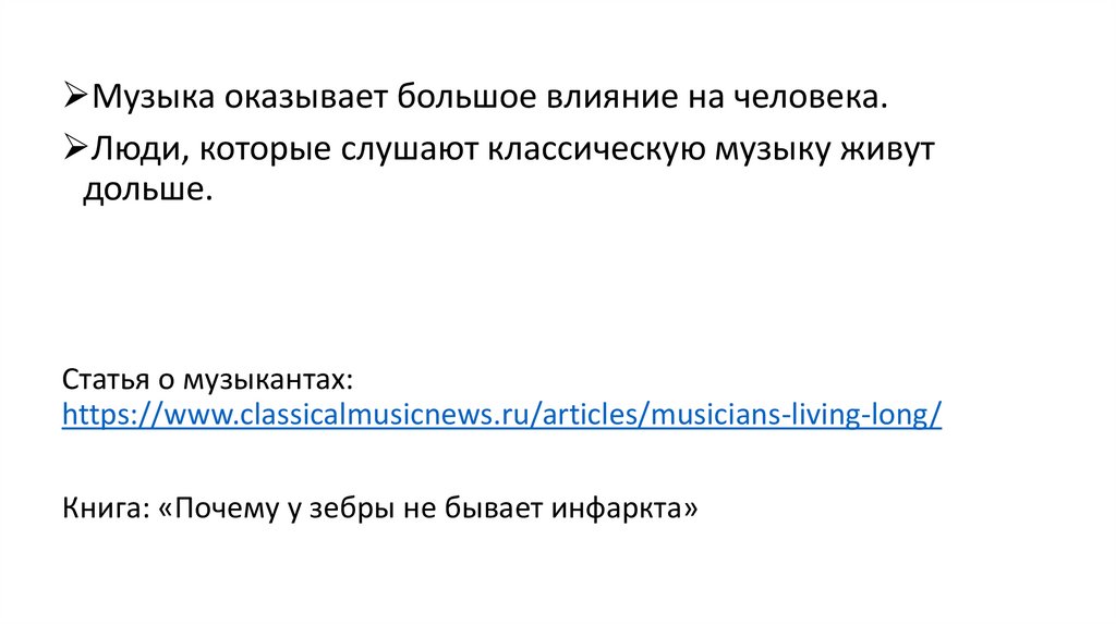 Музыка оказывает большое влияние на человека.Люди, которые слушают классическую музыку живут