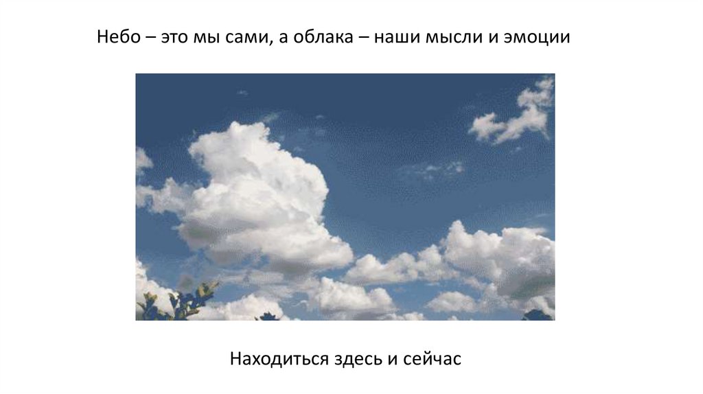 Небо – это мы сами, а облака – наши мысли и эмоцииНаходиться здесь и сейчас