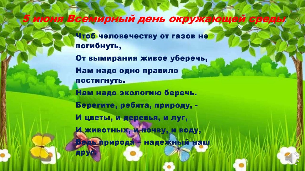Берегите, ребята, природу, И цветы, и деревья, и луг,