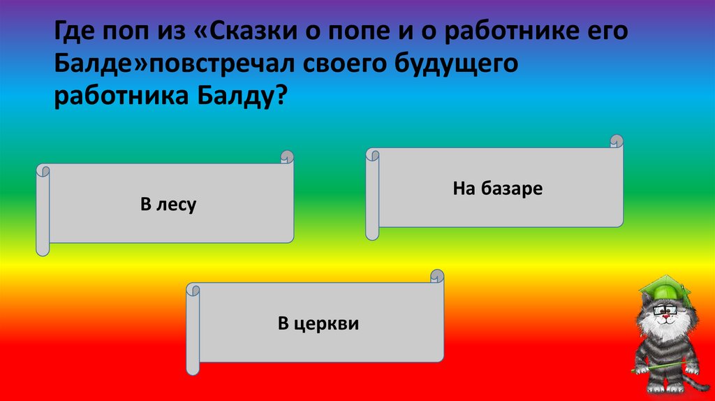 Где поп из «Сказки о попе и о работнике егоБалде»повстречал своего будущего