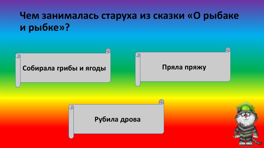 Чем занималась старуха из сказки «О рыбакеи рыбке»?