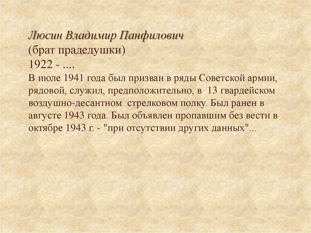 Люсин Владимир Панфилович(брат прадедушки)