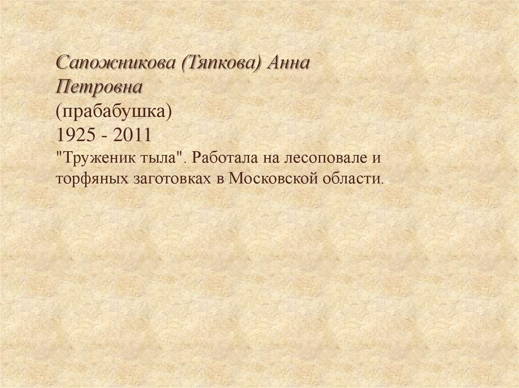 Сапожникова (Тяпкова) АннаПетровна
