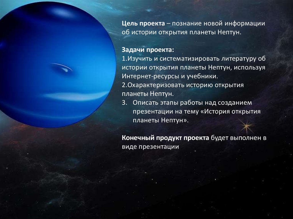 Цель проекта – познание новой информацииоб истории открытия планеты Нептун.