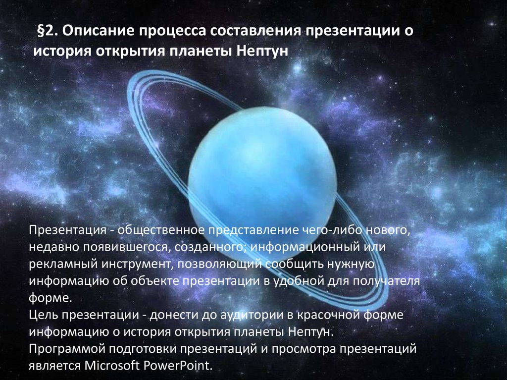 §2. Описание процесса составления презентации оистория открытия планеты Нептун