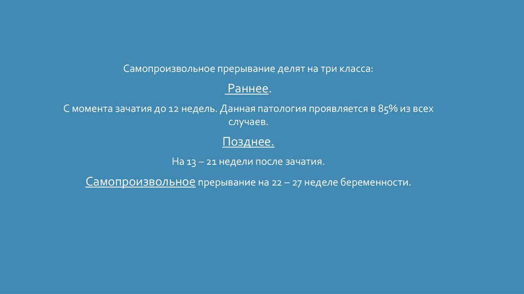 Самопроизвольное прерывание делят на три класса:Раннее.