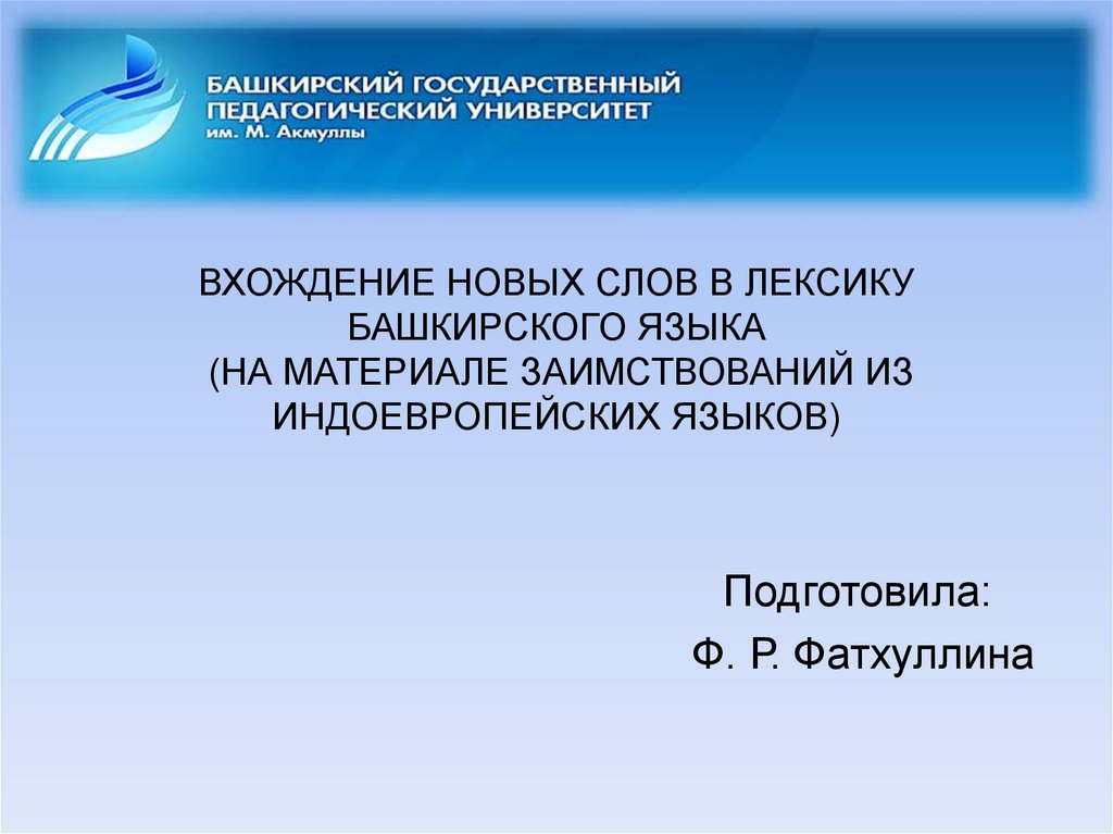 ВХОЖДЕНИЕ НОВЫХ СЛОВ В ЛЕКСИКУБАШКИРСКОГО ЯЗЫКА
