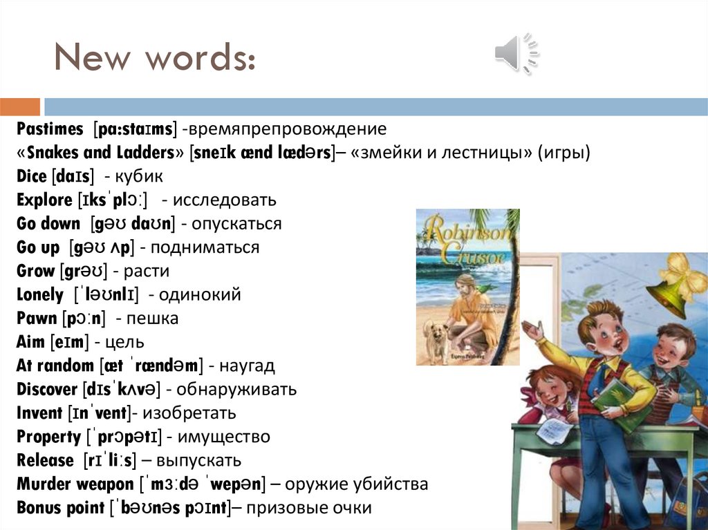 New words:Pastimes [pa:staɪms] -времяпрепровождение