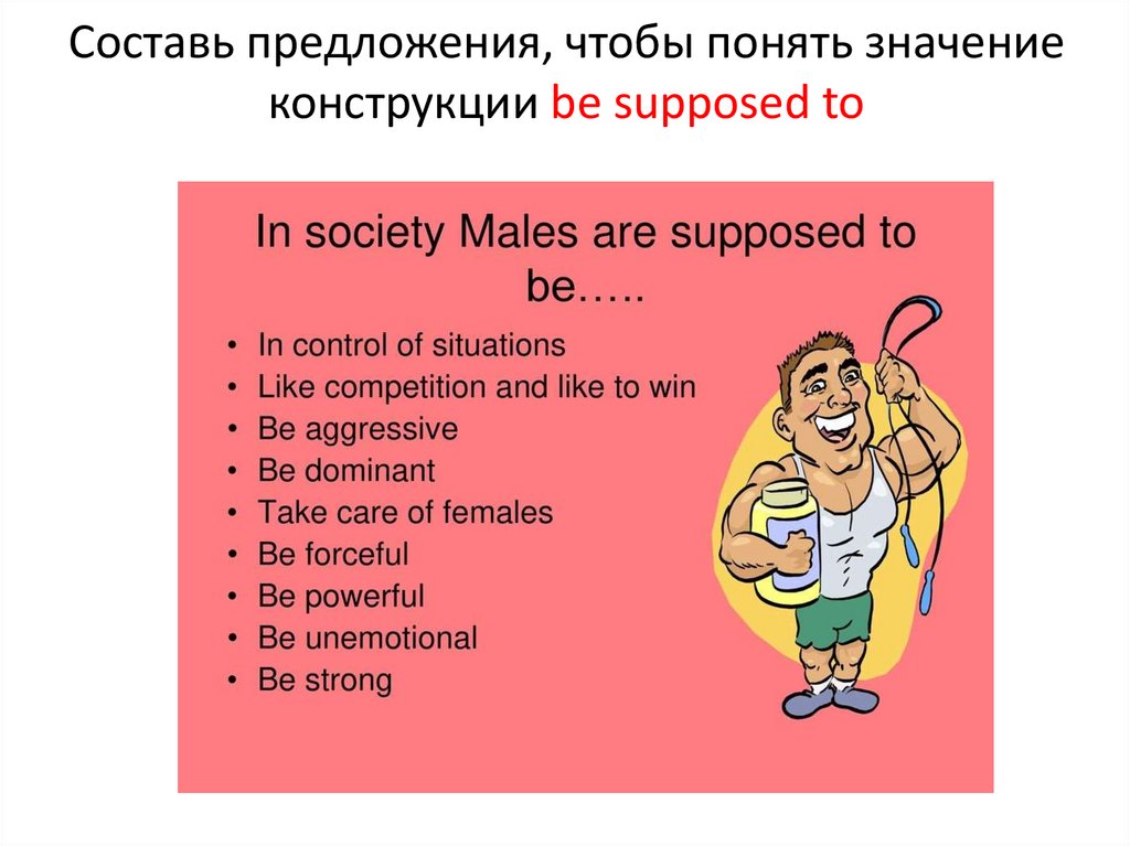 Составь предложения, чтобы понять значениеконструкции be supposed to