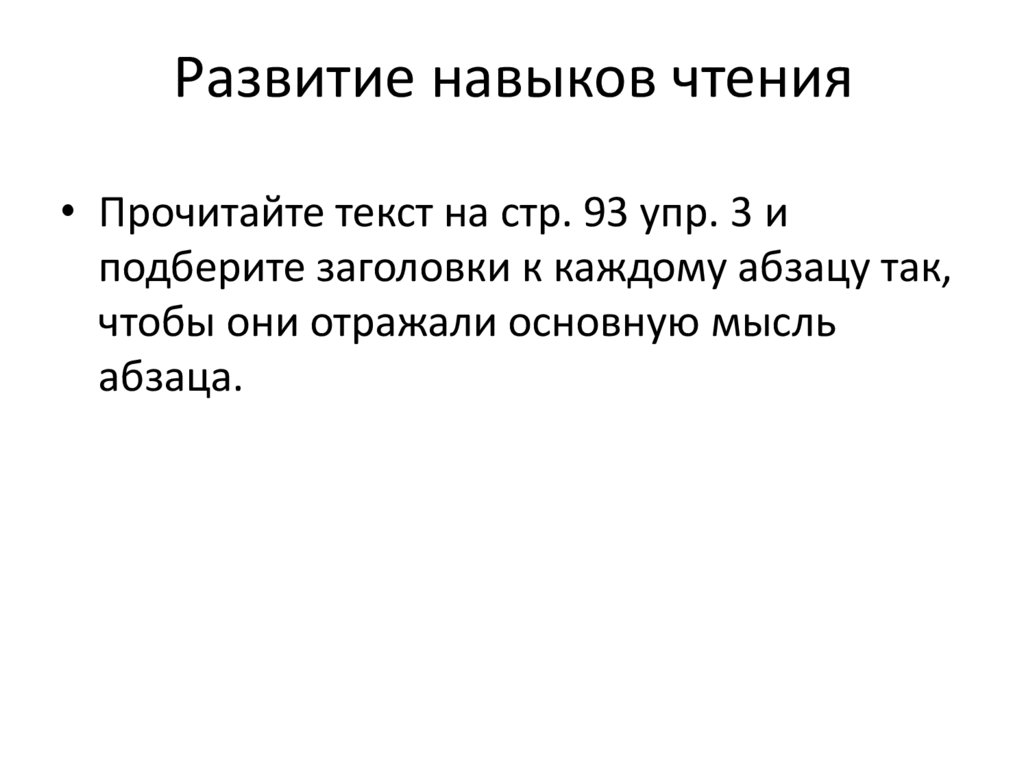 Развитие навыков чтения• Прочитайте текст на стр. 93 упр. 3 и