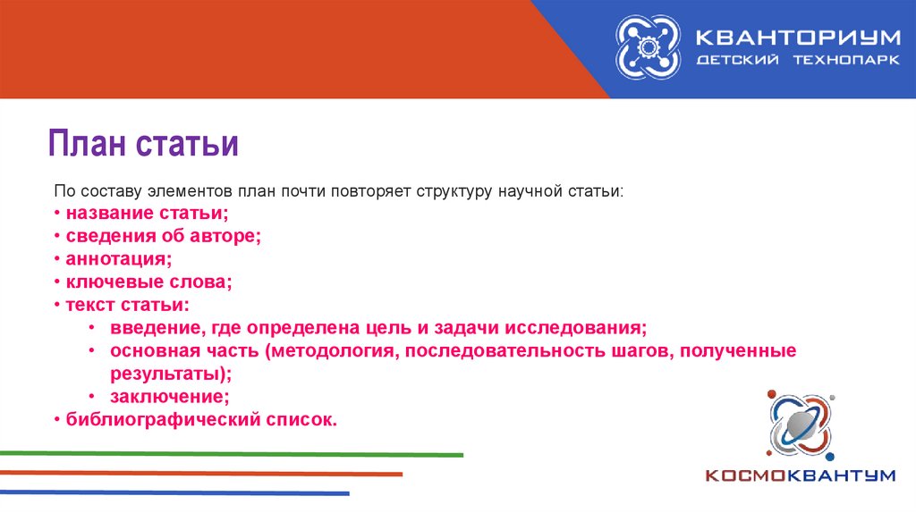 План статьиПо составу элементов план почти повторяет структуру научной статьи: