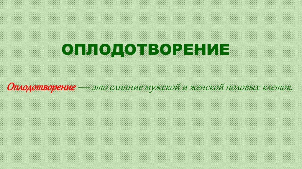 ОПЛОДОТВОРЕНИЕОплодотворение — это слияние мужской и женской половых клеток.