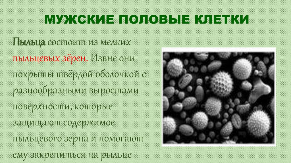 МУЖСКИЕ ПОЛОВЫЕ КЛЕТКИПыльца состоит из мелких