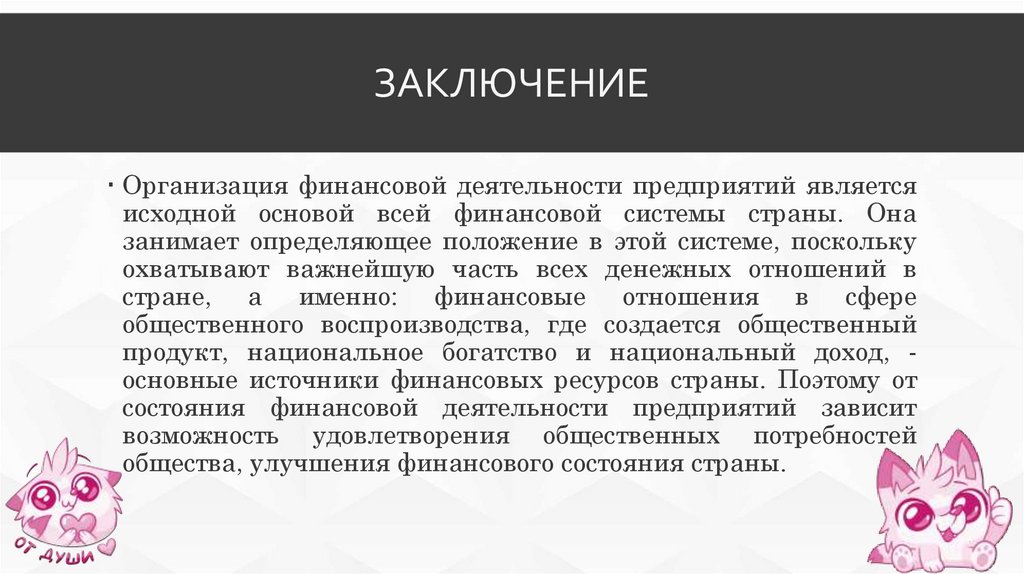 ЗАКЛЮЧЕНИЕОрганизация финансовой деятельности предприятий является