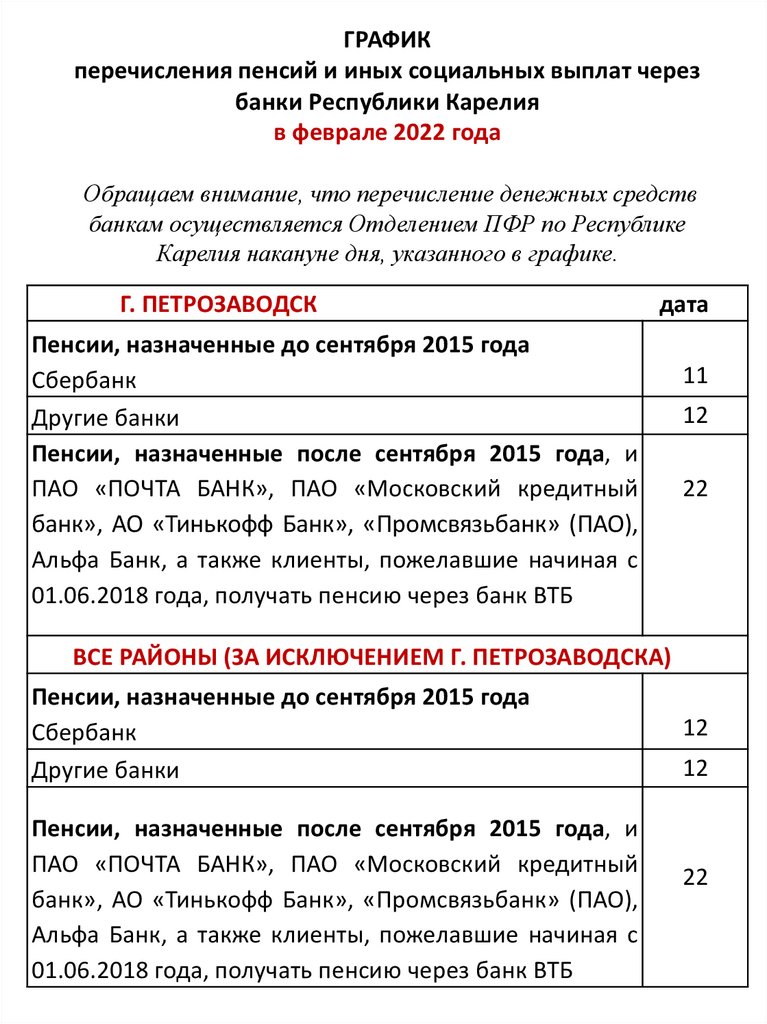 ГРАФИКперечисления пенсий и иных социальных выплат через