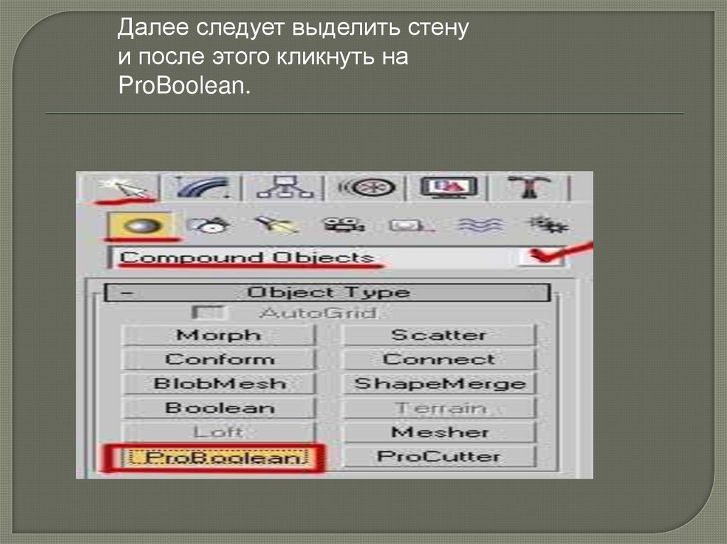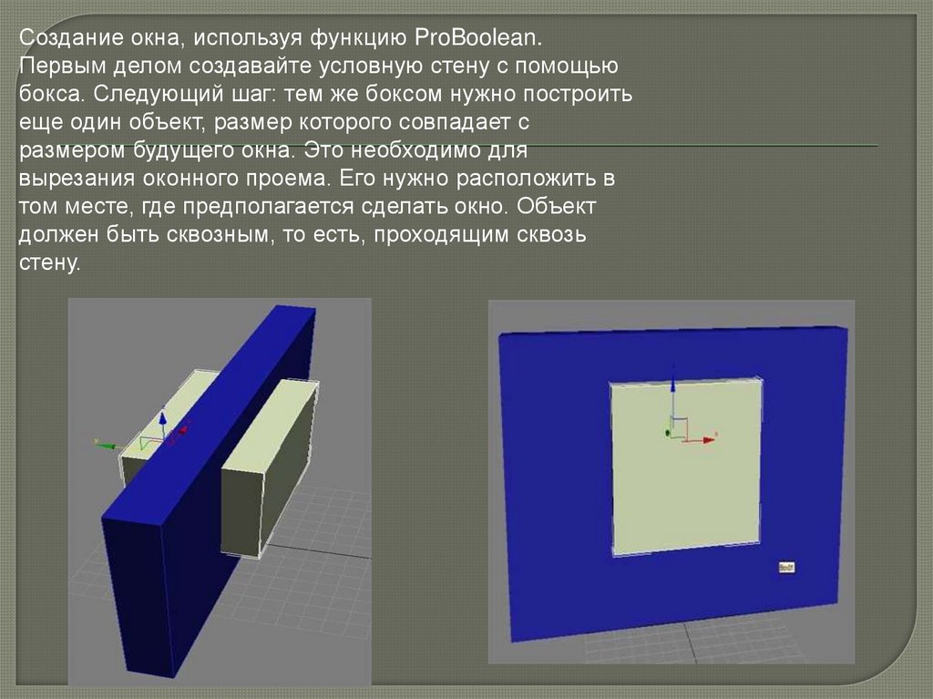 Создание окна, используя функцию ProBoolean.Первым делом создавайте условную стену с помощью
