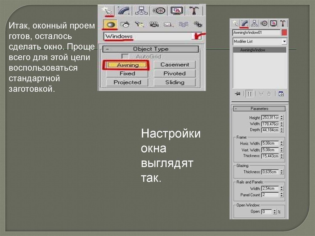 Итак, оконный проемготов, осталось