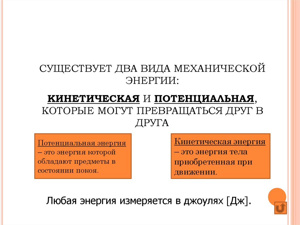 СУЩЕСТВУЕТ ДВА ВИДА МЕХАНИЧЕСКОЙЭНЕРГИИ: