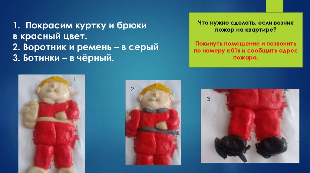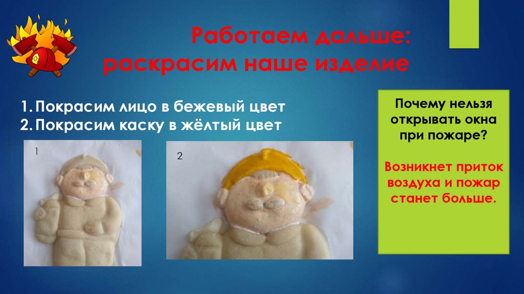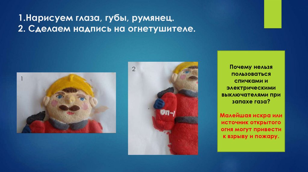 1.Нарисуем глаза, губы, румянец.2. Сделаем надпись на огнетушителе.