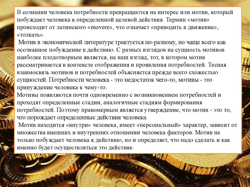 Мотив в экономической литературе трактуется по-разному, но чаще всего как