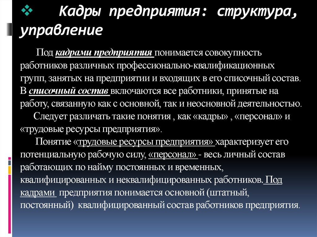 кадрами предприятия понимается основной (штатный,