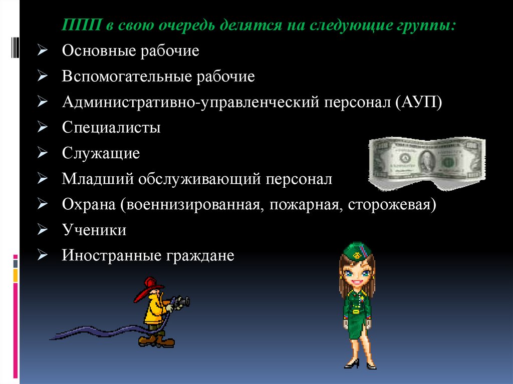 ППП в свою очередь делятся на следующие группы:Основные рабочие