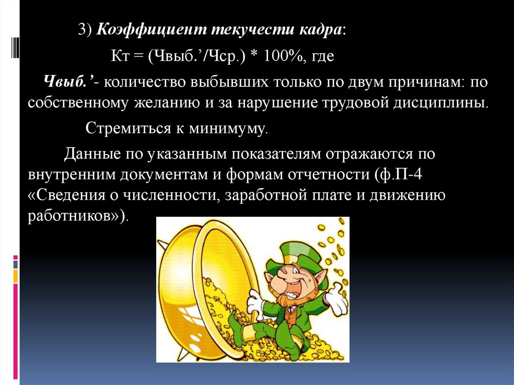 3) Коэффициент текучести кадра:Кт = (Чвыб.’/Чср.) * 100%, где