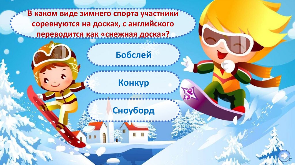 В каком виде зимнего спорта участникисоревнуются на досках, с английского