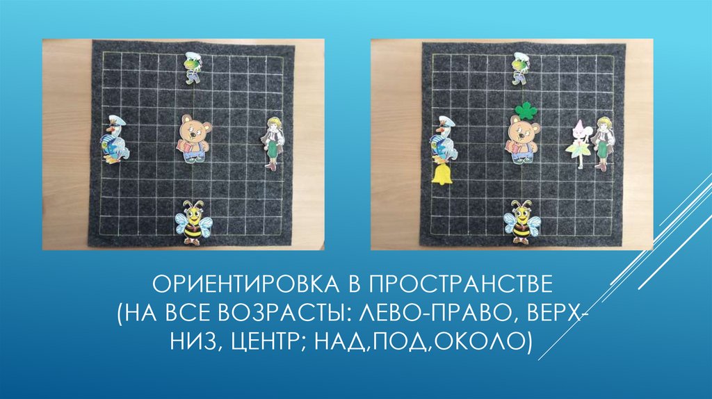 ОРИЕНТИРОВКА В ПРОСТРАНСТВЕ(НА ВСЕ ВОЗРАСТЫ: ЛЕВО-ПРАВО, ВЕРХНИЗ, ЦЕНТР; НАД,ПОД,ОКОЛО)