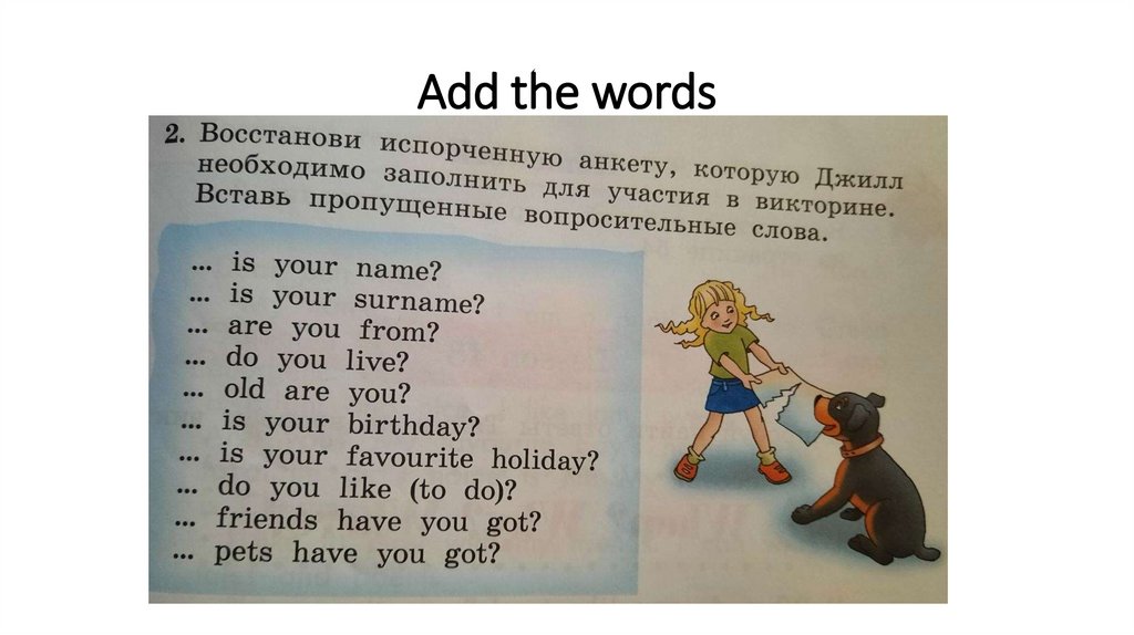 Add the words