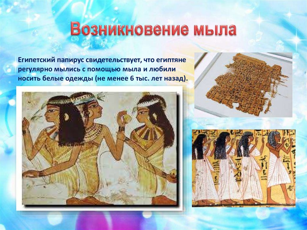 Египетский папирус свидетельствует, что египтянерегулярно мылись с помощью мыла и любили