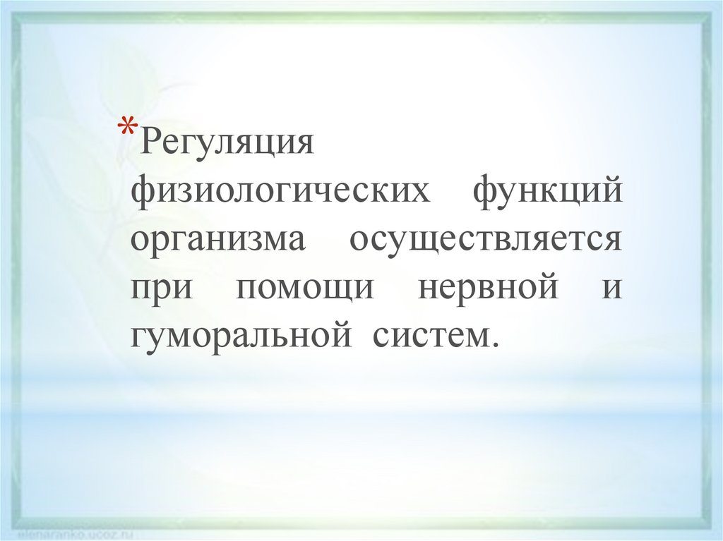 *Регуляцияфизиологических функций