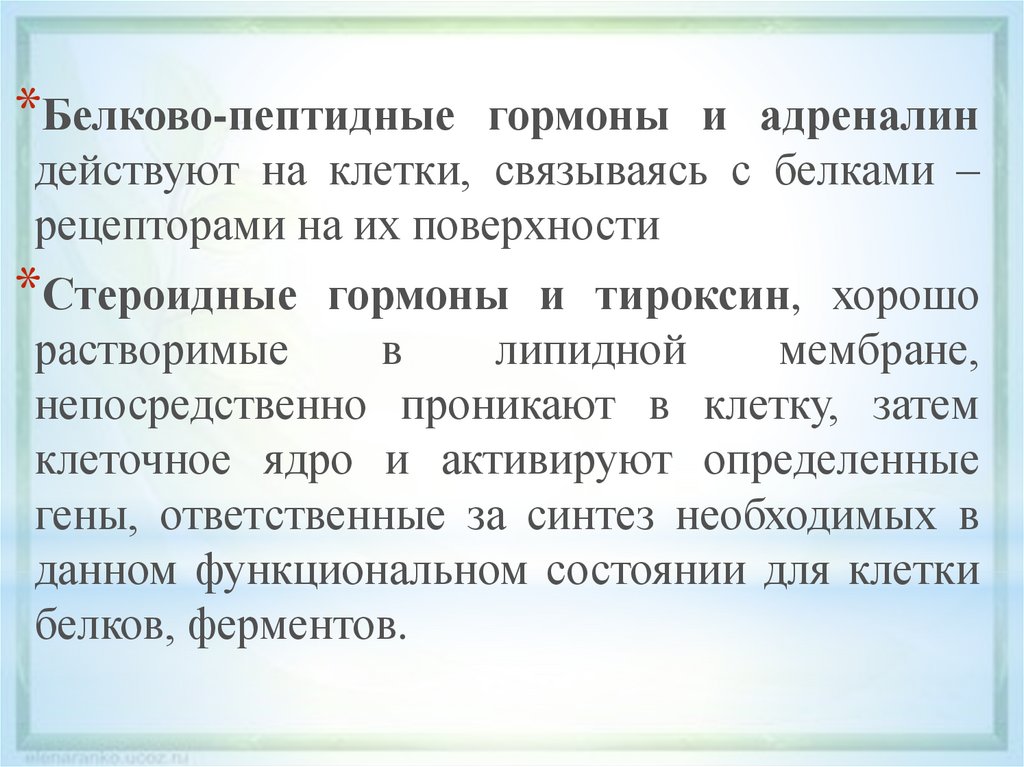*Белково-пептидныегормоны и адреналин