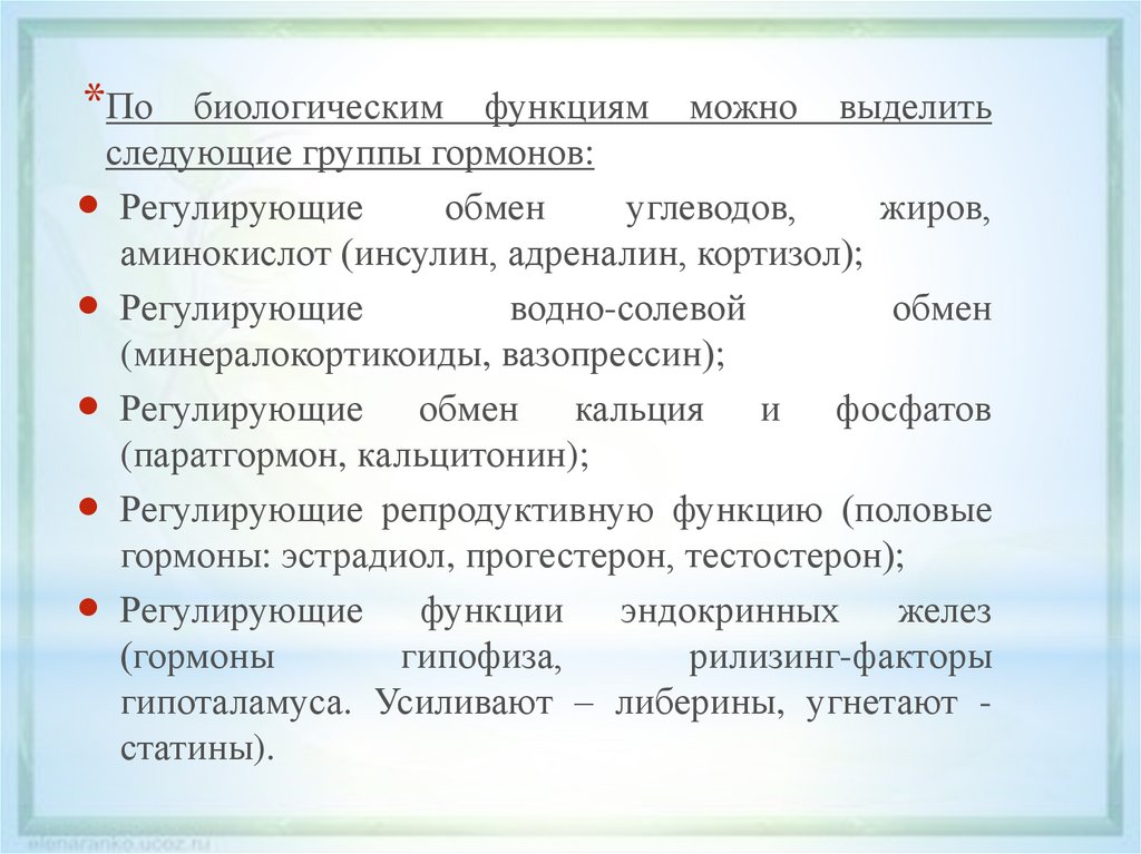 следующие группы гормонов: